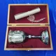 Бокал поражает своим изысканным декором: медальоны, изображающие Петра Первого и герб Российской Империи, подчеркивают его исключительный статус. Изящное покрытие черненым серебром и внутренняя отделка золотом высшей пробы, дополненная кристаллами, создают неповторимую атмосферу величия.